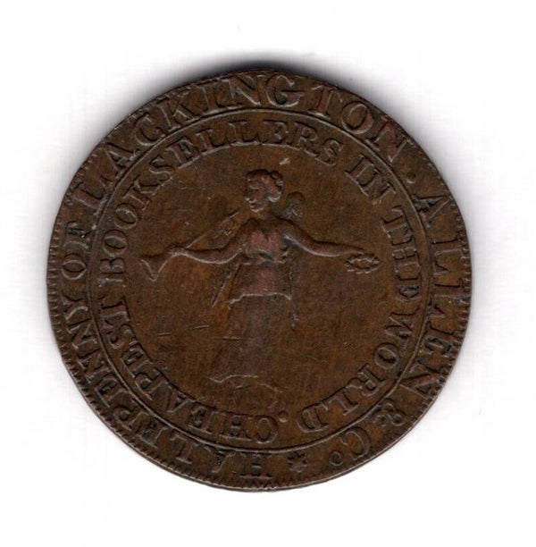 J.Lackington. Bookseller, Finsbury Square. Halfpenny 1795.