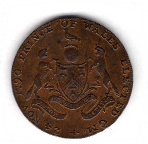 Middlesex Freemasons Halfpenny, Prince of Wales elected 1790.