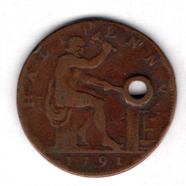 WilkEnson mis-spelling, Halfpenny token, holed, 1791.