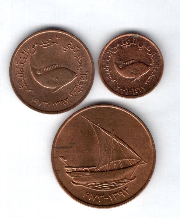 United Arab Emirates, 5 Fils 1973 & 2001, 10 Fils 1973.
