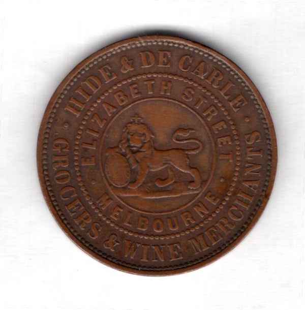 Australia, Melbourne, Token for Hide & De Carle, 1858.