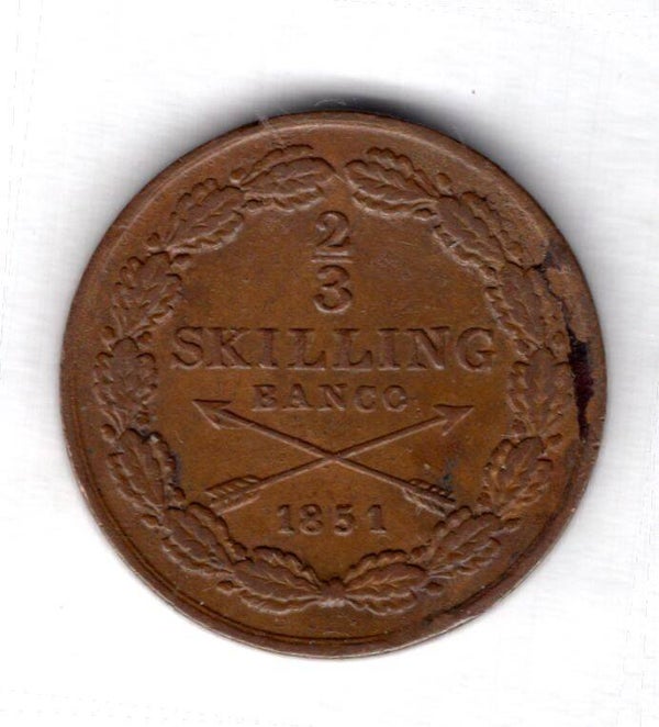 Sweden. 2/3rd Skilling 1851.
