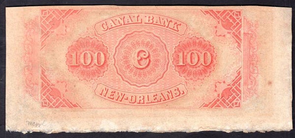 USA, Canal & Banking Co, New Orleans, $100 remainder (1850s) (Haxby G60a).
