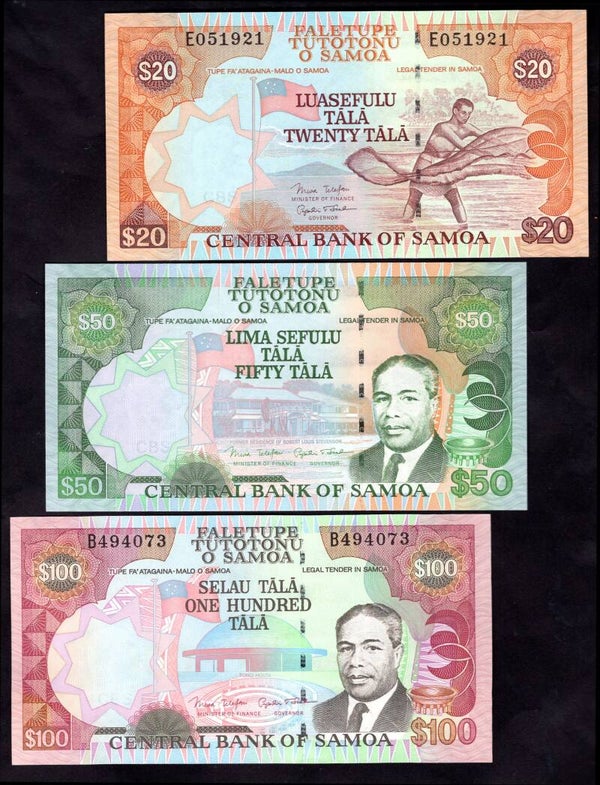 Samoa, Central Bank, 2-100 tala (6 notes) includes $50 without serial numbers.