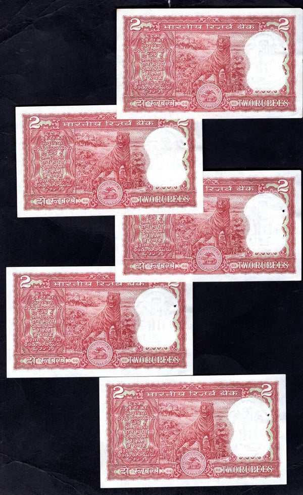 India, 2 rupees x 5, Singh signature (1984-85), 31V 249702-249706.