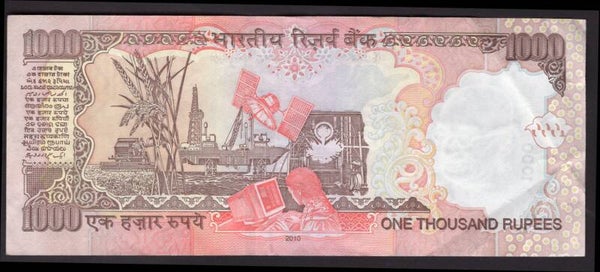 India, 1.000 rupees, 2010. 5CE 085185. (Pick 100f). F-VF.