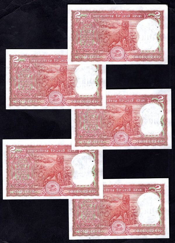 India, 2 rupees x 5, Venkitaramanan signature (1997), 61C 510201-510205.