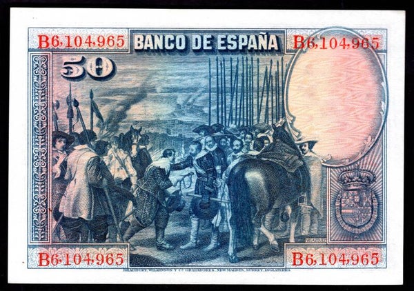 Spain, 50 Pesetas, 15-8-1928 (WPM 75b). B6,104,965. VF-EF.