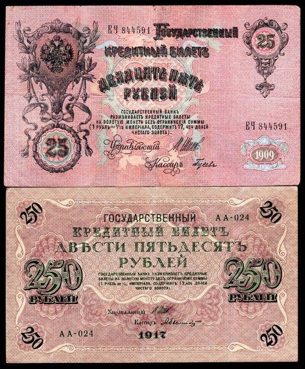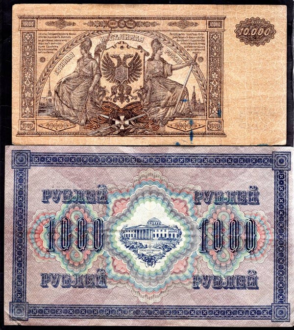 1,000 Roubles, a couple of pinholes. Crisp F-VF.