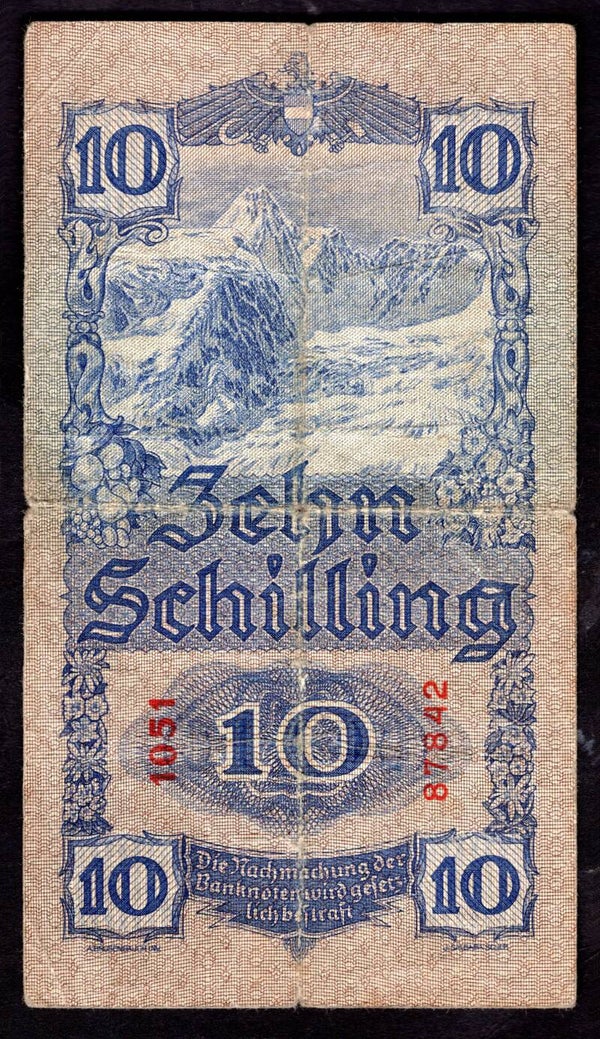 Austria, Nationalbank. 10 schilling. 2-1-1933. 1051 87842. (WPM 99a). GF.