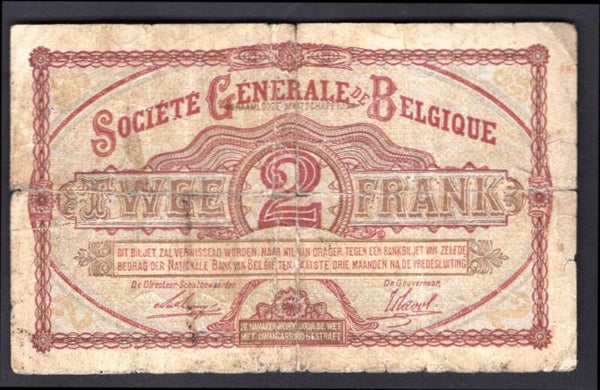 Belgium: National Bank. 2 francs. 22.11.16. R.369324 (Pick 87). VG.