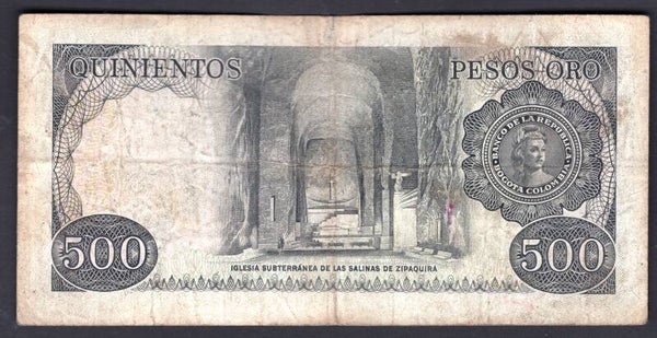 Colombia, 500 Pesos, 1979, (WPM 420b). 071229939. Pinhole in centre, circulation staining. GF.