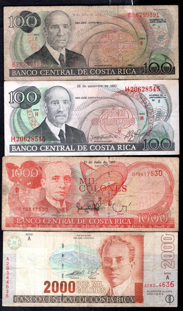 1,000 Colones, 1997, ink annotation, 1 centimetre tear top margin, pinholes, heavty pressing. VG.