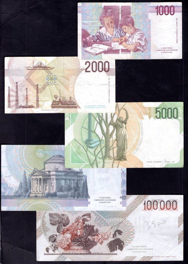 Italy, 5 banknotes, 1980s-90s. MV11418