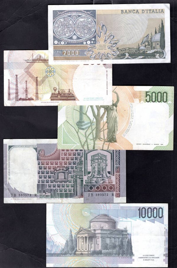 Italy, Selection of banknotes (10), 1966-1990. dy13557