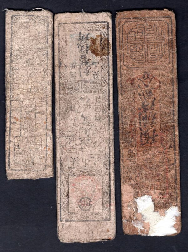 Japan; 3, low grade Hansatsu, 19th Century. With damage. DY16087