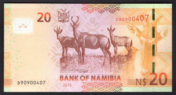 Namibia, 20 Dollars, 2015 (WPM 17). D90900407. AU-UNC.