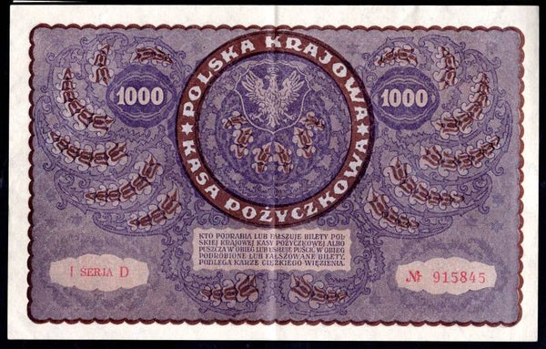 Poland, State Loan Bank. 1,000 marek, 1919, various series. VF-EF.