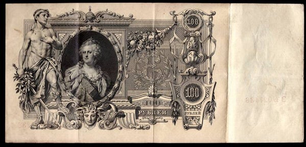 Russia, 100 roubles, Shipov, 1910, No. 027138 (WPM 13c). Crisp solid VF.