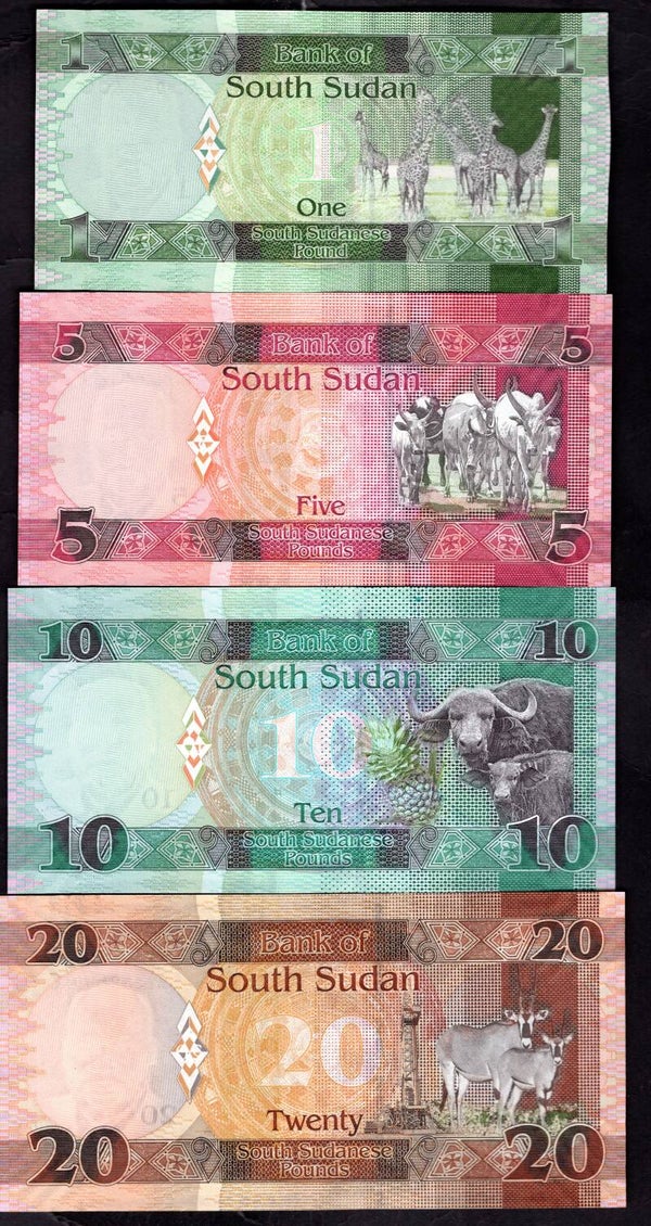 South Sudan, 1, 5, 10 & 20 Pounds (2011), 2015-16. All AU.