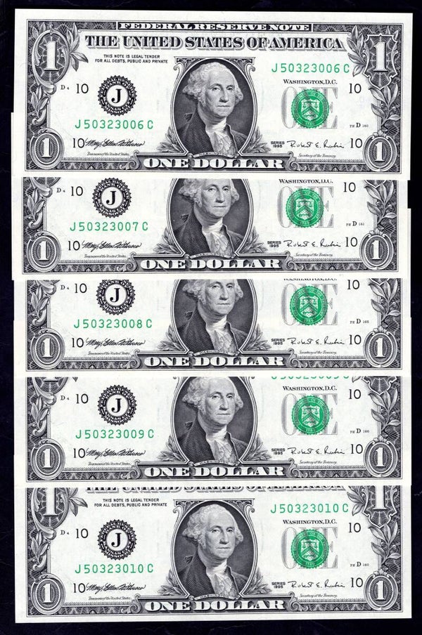 USA, Federal Reserve, Kansas City, 10 x $1 consecutive 1995.