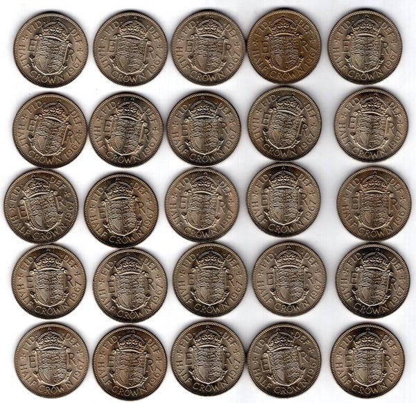 Great Britain, Elizabeth II, 25 x Halfcrown, 1967, in cardboard coin tube. Starting to develop a nice patina, am presuming these were put away not long after issue. Allow for bag marking. DY13439