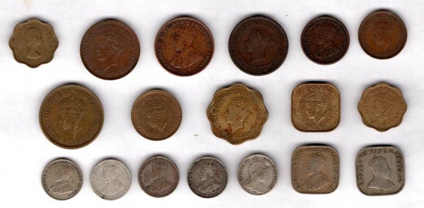 George V, Half Cent 1917, One Cent 1922. 5 Cents 1912H, 10 Cents 1913, 1914, 1919, 1926.