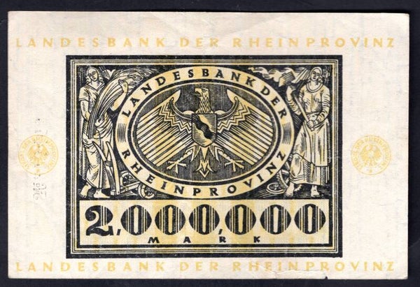 Germany. Dusseldorf Two Million Mark 1-9-1923. No 275453. GF.