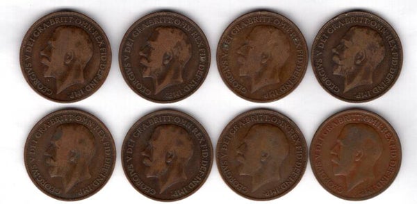 Great Britain, George V, Pennies (8), 4 x 1918H, 1 x 1918KN & 3 x 1919H.
