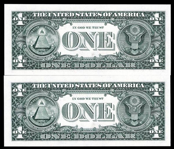 USA, FRN, $1 x 2 Consecutive Replacements. B11031265*/266*.