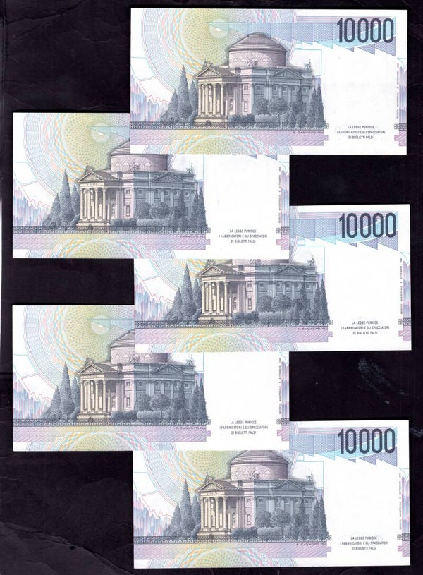 Italy, 10.000 Lire, x 5 Consecutive NF035257-035261.