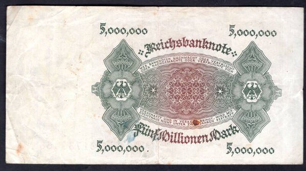 Germany. 5 Million Mark, 1-6-1923 (WPM 90). A.01733468. GF.