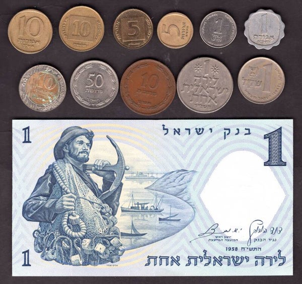 Israel Selection, 4 banknotes, 11 coins.