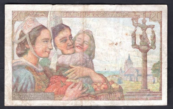 France. 20 Francs 10-2-1944. 274686391. Fine.