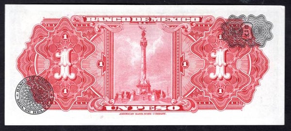 Mexico. One Peso 8-IX-54. ET X666033 AU-UNC.
