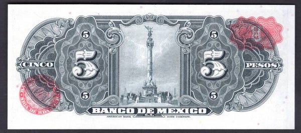 Mexico. Five Pesos 8-11-1961 series LD W402983. UNC.
