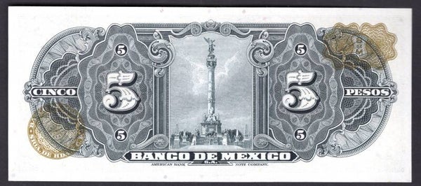 Mexico. Five Pesos 25-1-1961, series JU S510761. UNC.