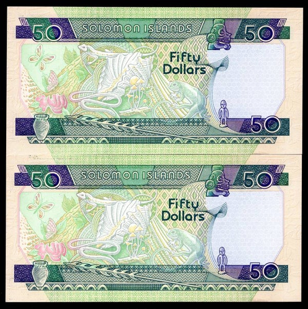 Solomon Islands, $50 (1997) First series, consec pair C/1 000664-665.