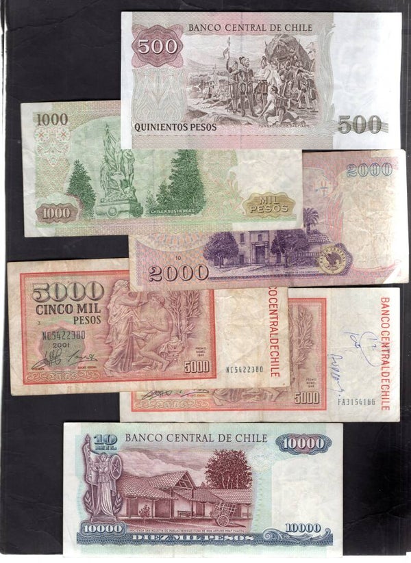 5,000 2001, stain on reverse, GF. 10,000 = crisp VF.