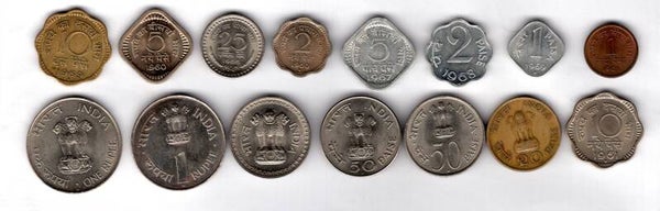 India. 15 coins from the 1960s.