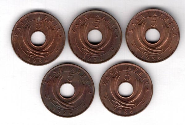 British East Africa, 5 Cents x 5. 1936KN. DY17444