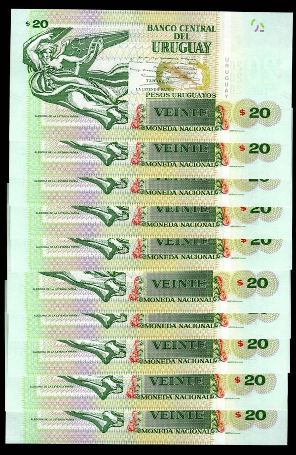 Uruguay. 20 Pesos 2018 x 10 NOT consecutive. AU-UNC.