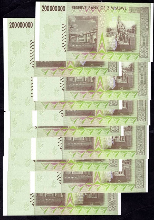 Zimbabwe, 200 Million Dollars, 2008, x 10 consecutive.