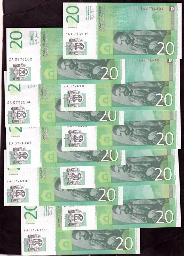 Serbia. 20 Dinara x 10 consecutive replacements 2006. UNC.