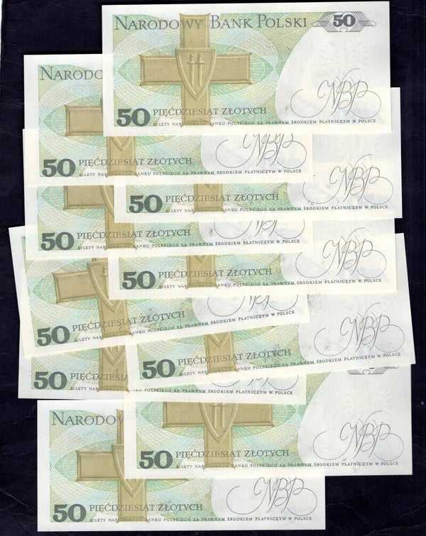 Poland. 50 Zloty x 10, 1988, consecutive HD6729737-46. AU.