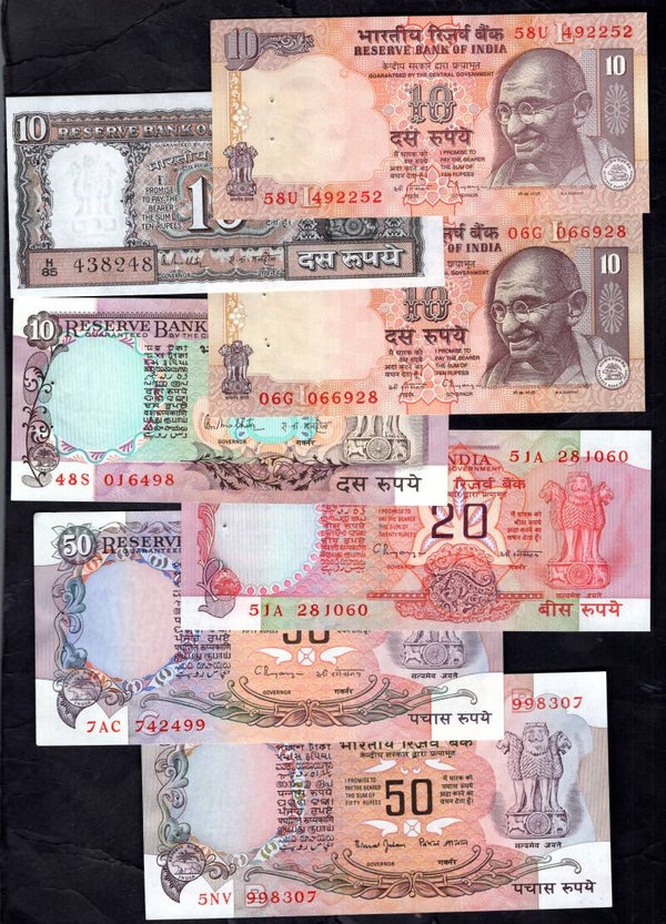 India. 14 banknotes, with booklet holes, average AU. DY17693