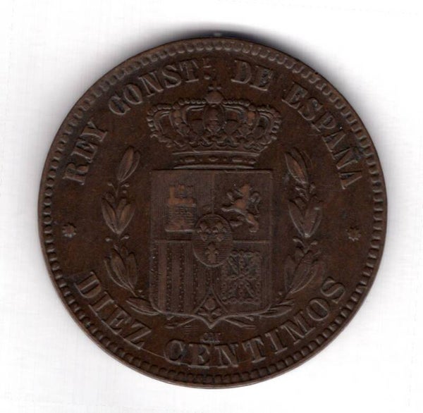Spain, 10 Centimos 1879. VF-EF. DY17919