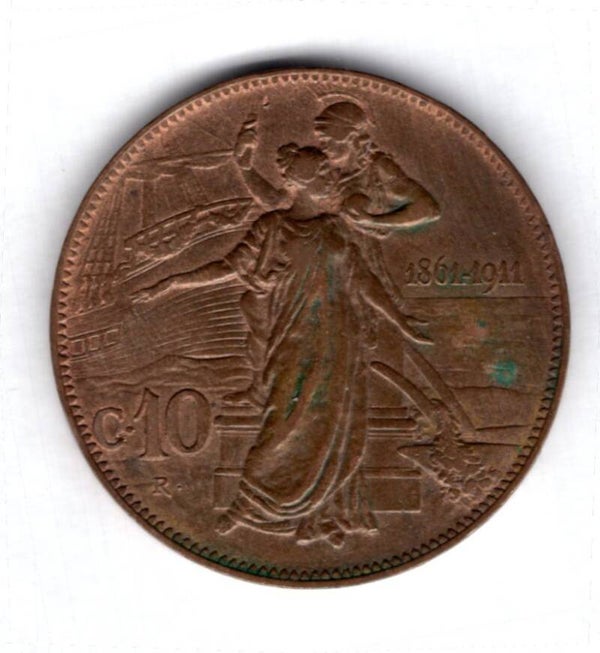 Italy. 10 Centesimi 1861-1911. Gilded. dy18059