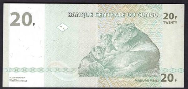 Congo. 20 Francs 2003 JA6130798X. UNC.