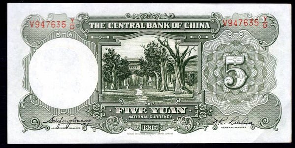 China. Central Bank. 5 Yuan 1936 V947635 Y/D. GEF.